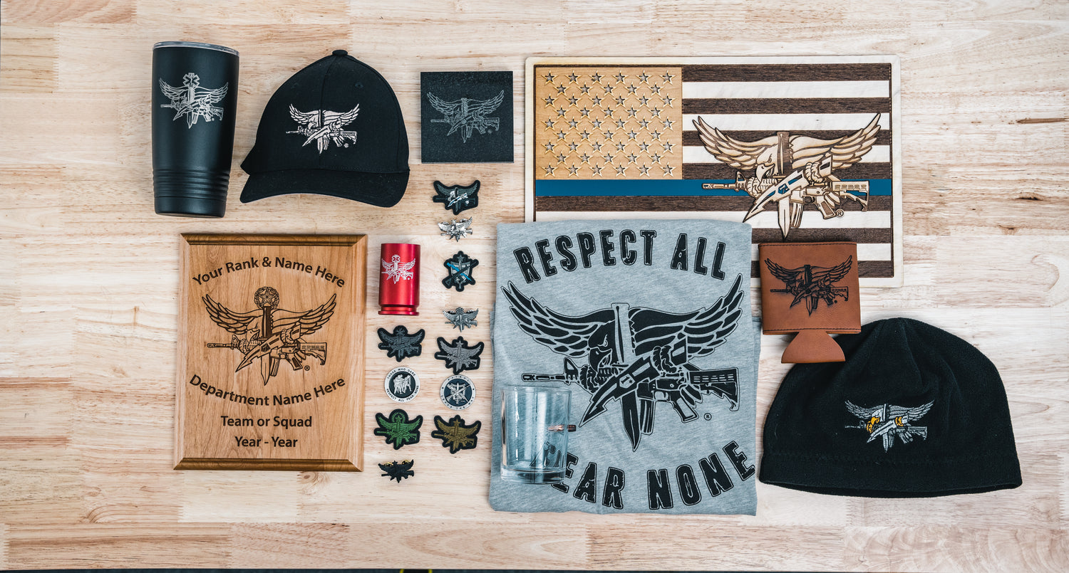 The SWAT Operator Insignia© features an eagle to encompass the strength, honor & integrity it takes to work in the line of duty. Inspired by the United States Navy SEALs, the rifle in the insignia symbolizes firepower, the K-Bar represents stealth, and the lightning bolt represents speed & forcefulness of action.