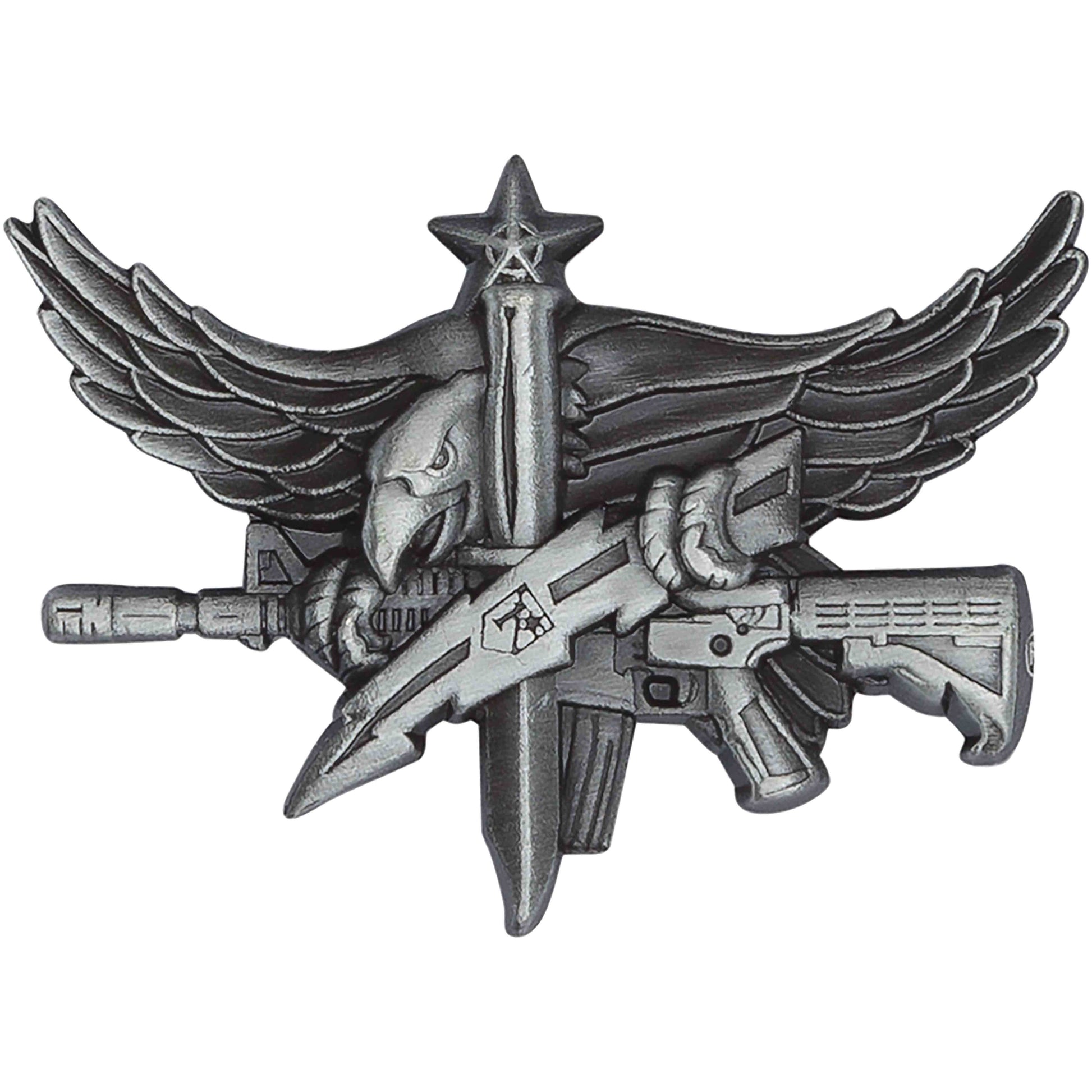 The SWAT Operator insignia pins are constructed with a double clutch back. They are 1" high x 1.5" wide, and come in five different colors and three different levels (operator, senior operator, and master operator).