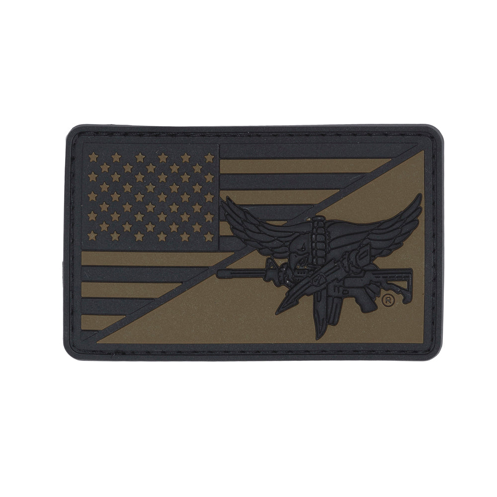 The PVC American Flag patch with the SWAT Operator Insignia overlayed on it has hook backing, is 2" high x 3 1/4" in width and is available in multiple colors.