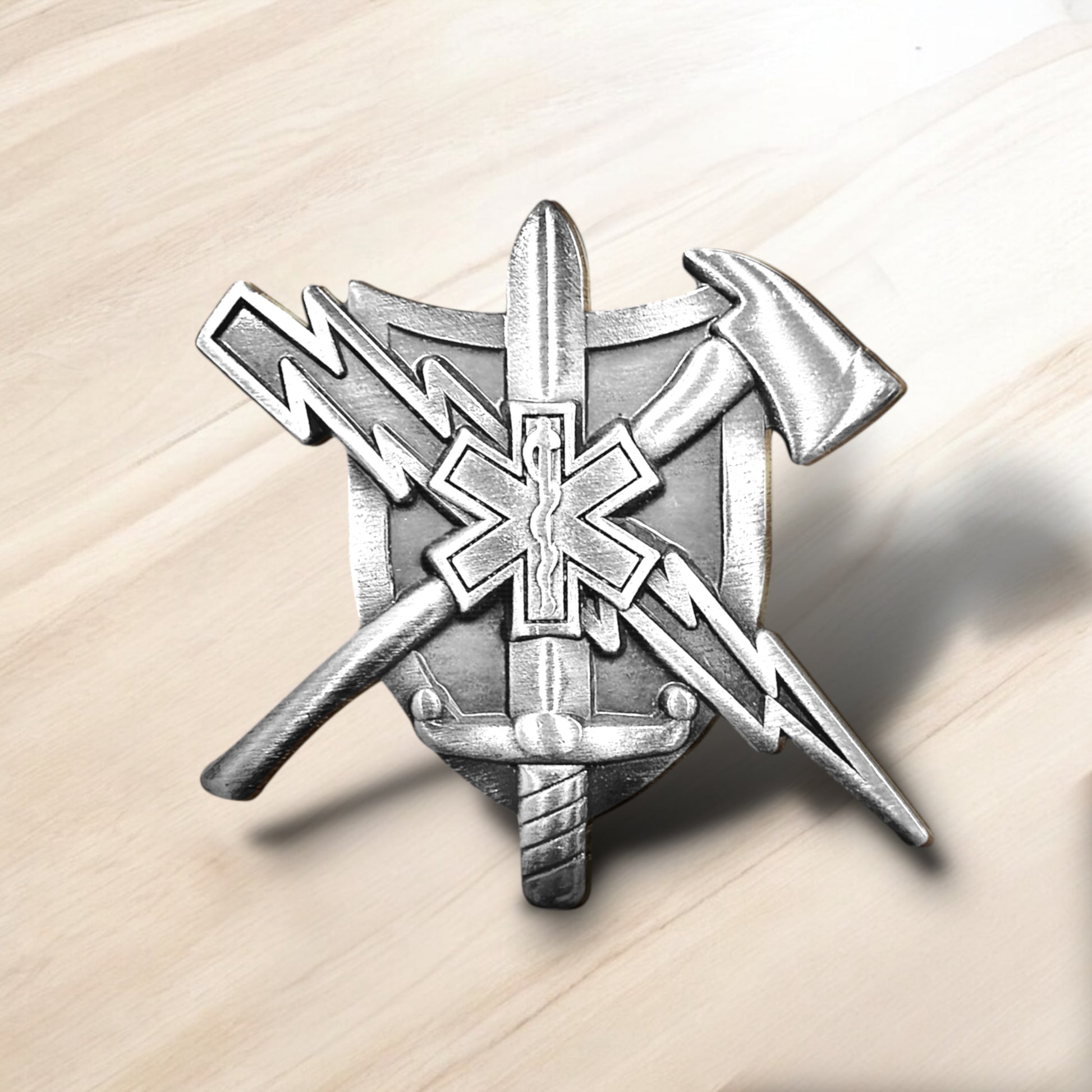 This insignia was designed by CMI to help build Esprit De Corps between all the stake holders that impact the outcome of life or death to the victims of crime, terrorism and mother nature herself. The law enforcement equivalent is known as the Tactical Patrol Officer Insignia™.